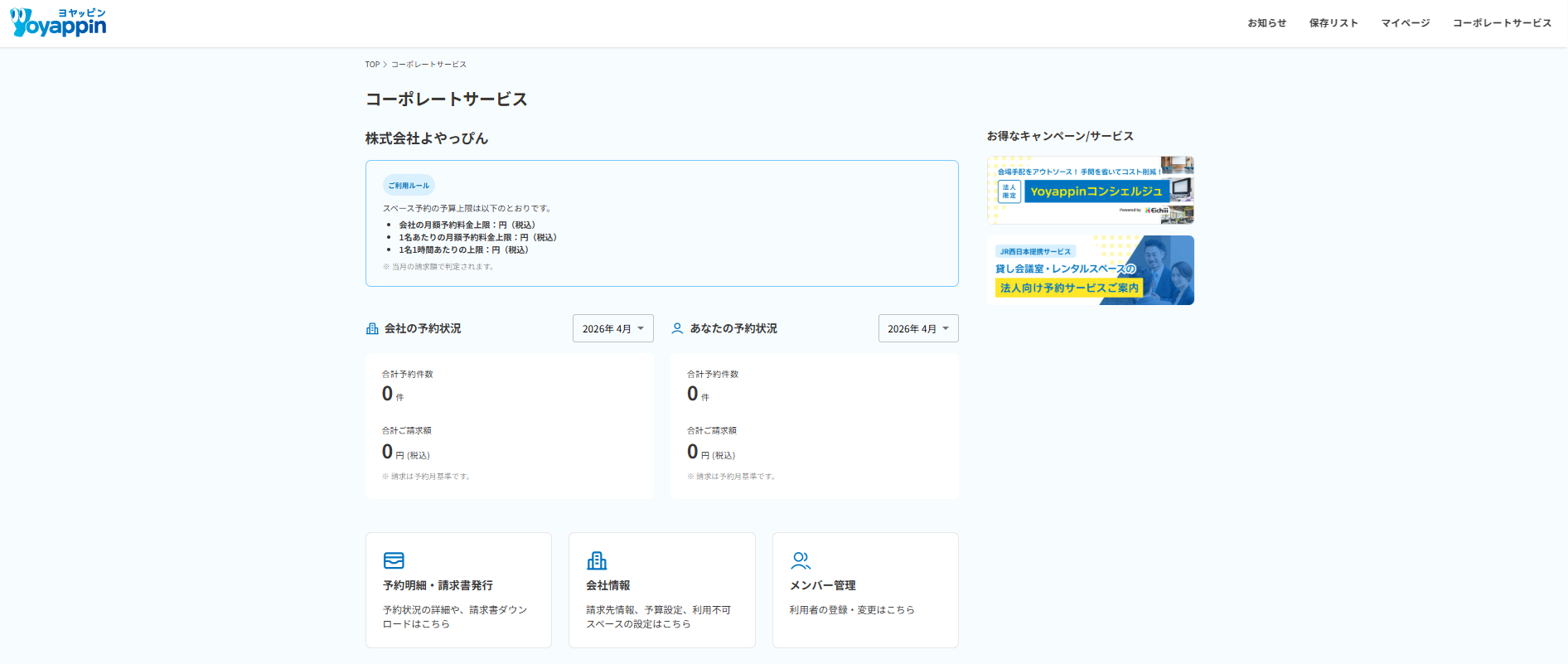 *1 ヨヤッピンへの会員登録方法はスペースご利用手順についてをご参照下さい。